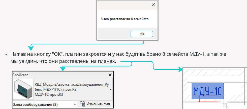 При расстановке семейств можно комбинировать функции описанные выше "Фильтрация, Запись параметров, Группирование семейств и др."