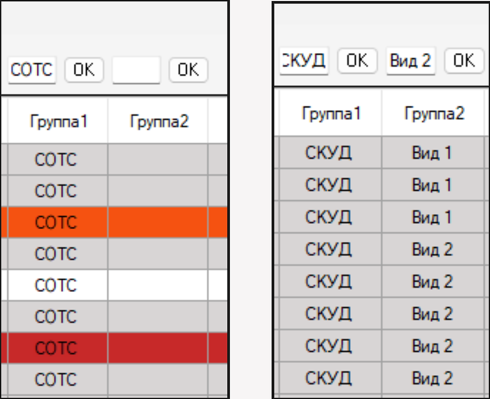 Для строки (№3) (Зеленый) статус говорит о том, что замониторенные параметры между семействами совпадают.